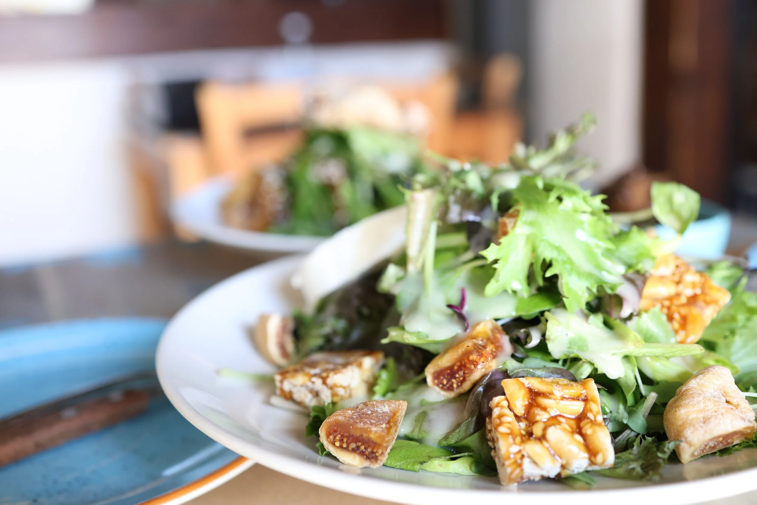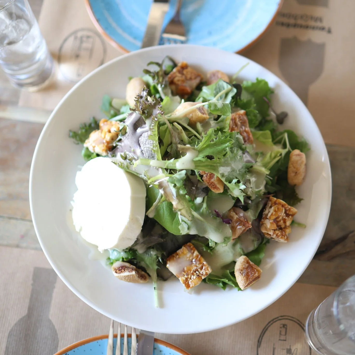 Salads can be boring—ours isn't. We take fresh greens, goat cheese, and dried figs, and dress them with Zivanomelo. This is a unique blend of Zivania (Cyprus’s fiery grape pomace spirit) and honey. It adds a sweet, boozy warmth that transforms a simple salad into a cocktail of flavors.